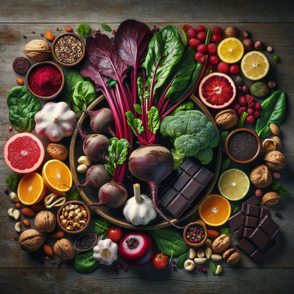 - Incorporate nitric oxide-boosting foods: Add foods rich in nitrates and antioxidants to your diet, which can enhance nitric oxide production. Good choices include beets, garlic, meat, dark chocolate, leafy greens, citrus fruits, nuts, and seeds. Pomegranates, in particular, are excellent as they are high in antioxidants that stimulate nitric oxide production.